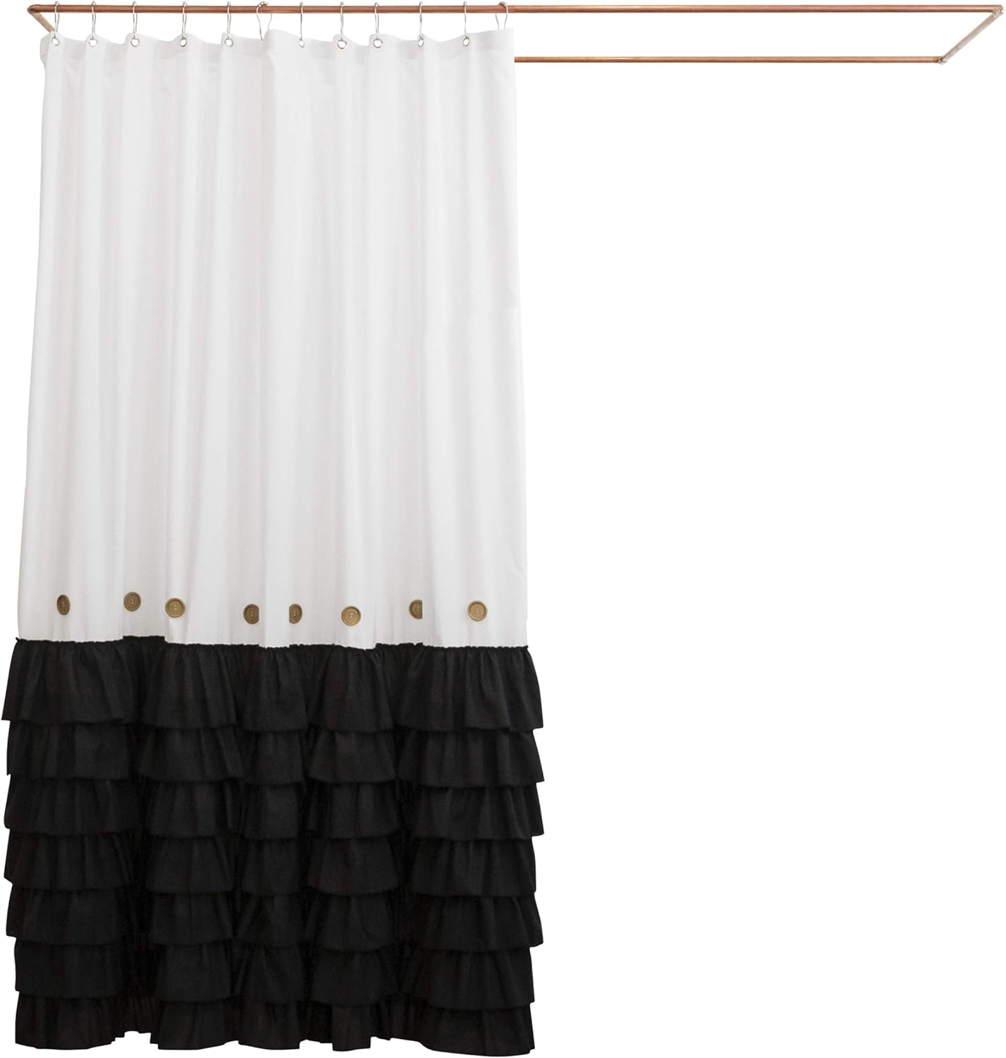 Avanti modern farmhouse shower curtain. Downpour curtain ideas make your bathroom look more spacious. However, the mixture of the woven towel, wooden tray, and sheer curtain prove that more materials is merrier. Graphic black and white, script ribbon words, applique and embroidery all add up for to one special shower. Black linen shower curtain farmhouse cottage country bathroom shower curtain heavy linen custom made to order.